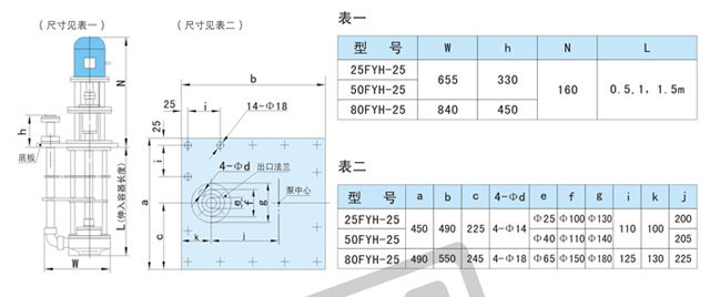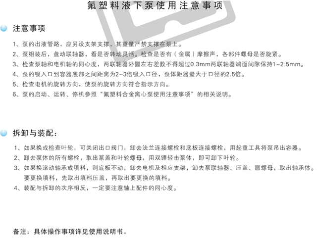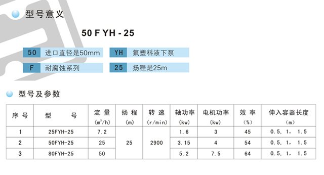 FYH型氟塑料液下泵是長軸式立式離心泵,其接觸液體部分全部由氟塑料合制而成,具有耐腐蝕范圍廣、效率高、重量輕、不需要灌液即能抽送、維修方便等特點。