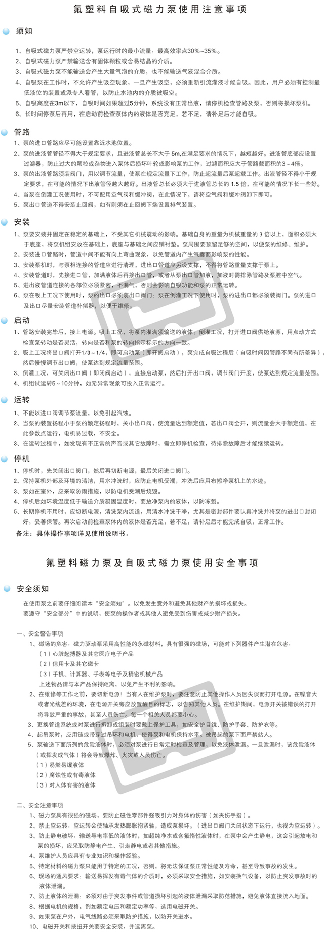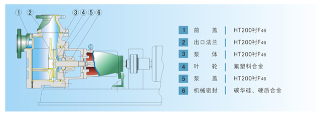 過流部件采用氟塑料、氟塑料合金制造,耐腐蝕性能優異。基體采用金屬制造,耐壓能力強。